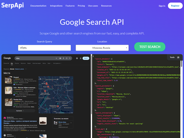Пробуем здесь. https://serpapi.com/